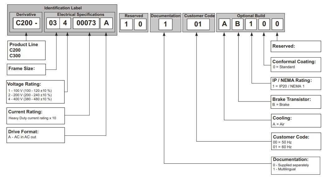 | C200-032-00100 | 2,2 kW | 10,0 A | C200-03200100A10100AB100 |